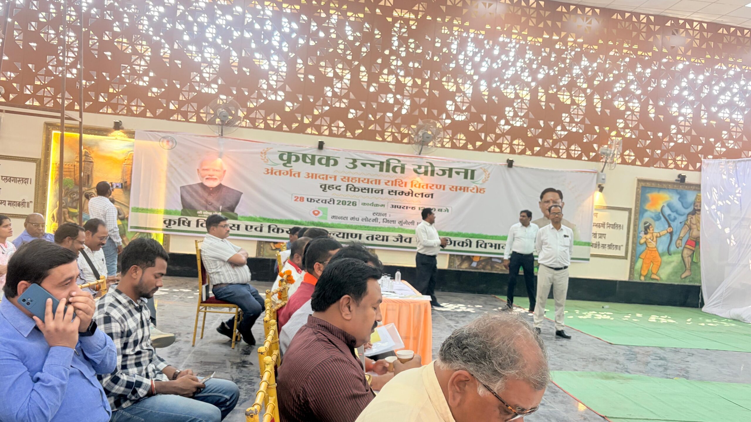 लोरमी के ‘मानस मंच’ में आयोजित इस वृहद किसान सम्मेलन के मुख्य बैनर पर प्रधानमंत्री नरेंद्र मोदी और मुख्यमंत्री विष्णु देव साय की तस्वीरें तो प्रमुखता से दिख रही हैं, लेकिन लोरमी के ही जन-प्रतिनिधियों—उपमुख्यमंत्री अरुण साव और केंद्रीय मंत्री तोखन साहू—की फोटो नदारद है।